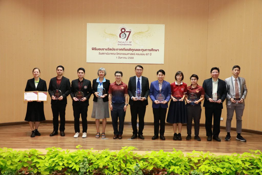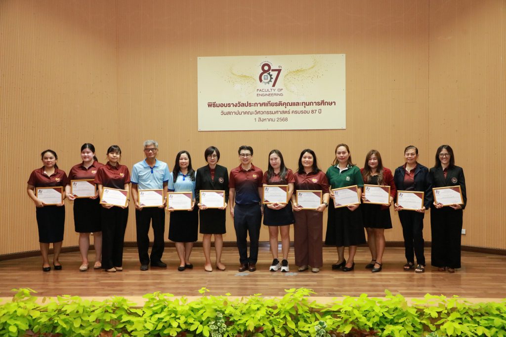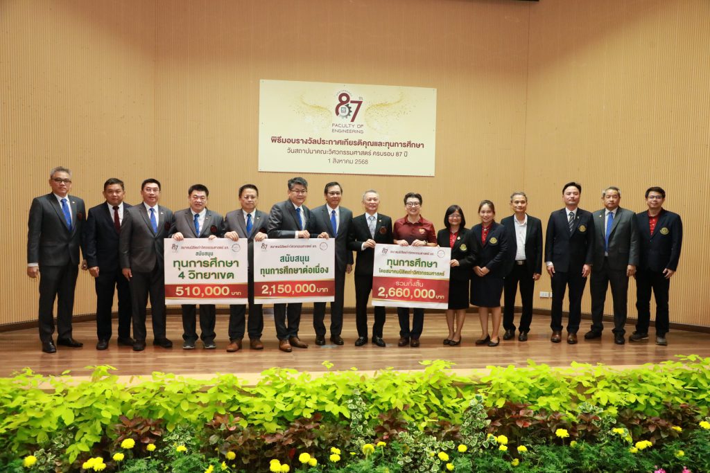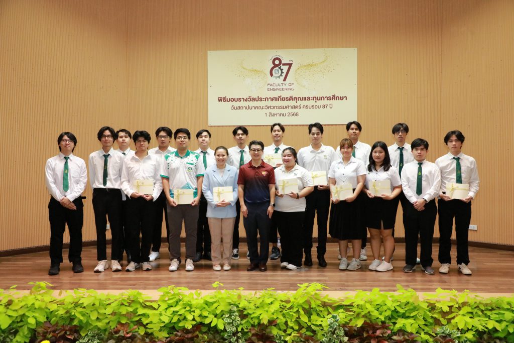 คณะวิศวกรรมศาสตร์ ร่วมกับสมาคมนิสิตเก่าวิศวกรรมศาสตร์ มหาวิทยาลัยเกษตรศาสตร์ (มก.) จัดงานวันสถาปนาคณะ ครบรอบ 87 ปี เมื่อวันที่ 1 สิงหาคม 2568 ภายในงานประกอบด้วยพิธีบวงสรวง พิธีเจริญพระพุทธมนต์ พิธีวางแจกันดอกไม้ณ หม่อมหลวงชูชาติ กำภู ผู้ก่อตั้งคณะวิศวกรรมศาสตร์ พิธีเปิดอาคารกิจกรรมนิสิต พิธีเปิดตัวศูนย์ปัญญาประดิษฐ์และหุ่นยนต์แห่งมหาวิทยาลัยเกษตรศาสตร์ และศูนย์วิศวกรรมและนวัตกรรมความยั่งยืน พิธีมอบรางวัลและประกาศเกียรติคุณอาจารย์ นิสิต และบุคลากร ผู้นำชื่อเสียงมาสู่คณะวิศวกรรมศาสตร์ และพิธีมอบทุนการศึกษาแก่นิสิตคณะวิศวกรรมศาสตร์ 4 วิทยาเขต (บางเขน กำแพงแสน ศรีราชา และวิทยาเขตเฉลิมพระเกียรติ จังหวัดสกลนคร) นิสิตคณะคณะพาณิชยนาวีนานาชาติ ศรีราชา และนิสิตวิทยาลัยการชลประทาน โดยมี ศ.ดร.วันชัย ยอดสุดใจ คณบดีคณะวิศวกรรมศาสตร์ เป็นประธานในพิธี จัดขึ้น ณ อาคารชูชาติ กำภู และอาคารนานาชาติ คณะวิศวกรรมศาสตร์