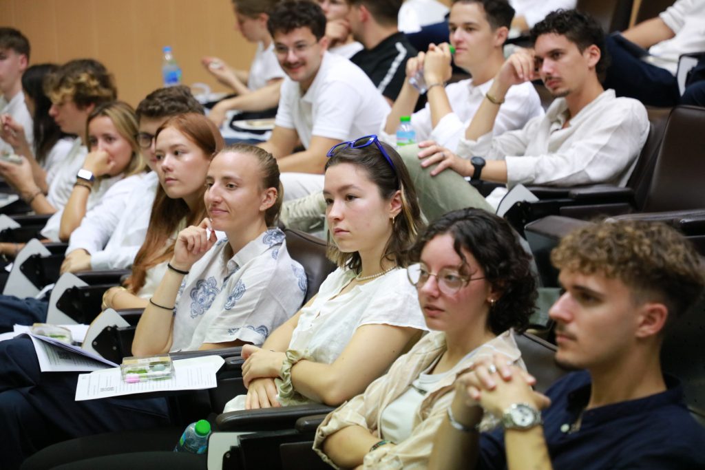 เมื่อวันที่ 31 กรกฎาคม 2568 โครงการเปิดสอนหลักสูตรปริญญาตรีนานาชาติ (International Undergraduate Program: IUP) จัดพิธีปฐมนิเทศสำหรับนิสิตต่างชาติ ณ Auditorium Room ชั้น 2 อาคารนานาชาติ โดยมี ศ.ดร.วันชัย ยอดสุดใจ คณบดีคณะวิศวกรรมศาสตร์ และ รศ.ดร.ชวลิต กิตติชัยการ ประธานโครงการ IUP ร่วมกล่าวต้อนรับ พร้อมด้วย ผศ.ดร.ปฐมาภรณ์ ศรีผดุงธรรม อาจารย์ในโครงการ IUP ได้บรรยายแนะนำเกี่ยวกับการใช้ชีวิตในคณะวิศวกรรมศาสตร์ นอกจากนี้ได้จัดกิจกรรมพบอาจารย์ที่ปรึกษา การให้บริการนิสิต การแนะนำการลงทะเบียนเรียน การจับคู่เพื่อนนิสิตคนไทย รวมทั้งการเยี่ยมชมอาคารและสถานที่ต่าง ๆ ภายในคณะวิศวกรรมศาสตร์