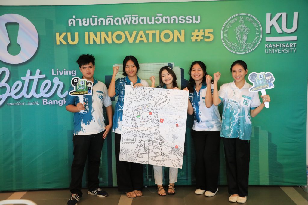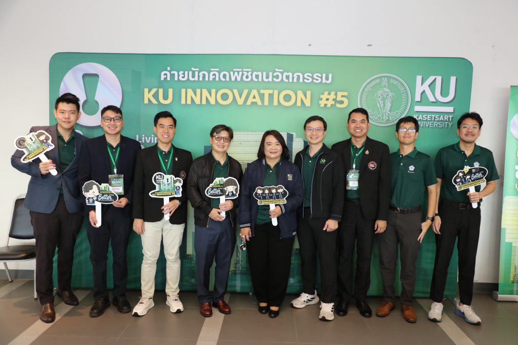 ค่ายนักคิดพิชิตนวัตกรรม KU Innovation 5 นวัตกรรมเพื่อสังคม ภายใต้หัวข้อ “Innovation for Sustainable Urban Societies: Enhancing Well-Being for All Life” จัดขึ้นระหว่างเดือนสิงหาคม 2568 – เดือนกุมภาพันธ์ 2569 โดยมีคณะสังคมศาสตร์ คณะวิศวกรรมศาสตร์ และคณะเทคนิคการสัตวแพทย์ มหาวิทยาลัยเกษตรศาสตร์ เป็นเจ้าภาพหลัก ในการดำเนินการ และมีนิสิตที่ผ่านการคัดเลือกเข้าร่วมโครงการ จำนวน 126 คน จาก 16 คณะ ซึ่งนิสิตจะได้ร่วมกันคิดค้นและออกแบบการพัฒนานวัตกรรมที่ตอบ โจทย์ปัญหาเชิงพื้นที่ของกรุงเทพมหานคร ผ่านการเรียนรู้จากประสบการณ์จริง การลงพื้นที่สำรวจปัญหา และการออกแบบแนวทางแก้ไขอย่างสร้างสรรค์และยั่งยืนเพื่อประโยชน์ ในการพัฒนากรุงเทพมหานครและสังคมโดยรวม ด้วยแนวคิด Living Better Bangkok – กรุงเทพฯ ที่ดีกว่า เพื่อชีวิต ที่ดีขึ้น ภายใต้กรอบนโยบาย 9 ด้าน 9 ดีของกรุงเทพมหานคร