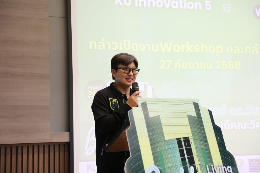เมื่อวันที่ 27- 28 กันยายน 2568 คณะวิศวกรรมศาสตร์ร่วมเป็นเจ้าภาพกับคณะสังคมศาสตร์และคณะเทคนิคการสัตวแพทย์ จัดกิจกรรม Workshop ครั้งที่ 2 ในโครงการ KU innovation Contest ครั้งที่ 5 ภายใต้แนวคิด “Better Tomorrow Bangkok” โดยมี ศ.ดร.วันชัย ยอดสุดใจ คณบดีคณะวิศวกรรมศาสตร์ เป็นประธานเปิดงานและกล่าวต้อนรับ พร้อมด้วย ผศ.นท.หญิง ดร.งามลมัย ผิวเหลือง คณบดีคณะสังคมศาสตร์ และ รศ.ดร.วุฒินันท์ รักษาจิตร์ คณบดีคณะเทคนิคการสัตวแพทย์ ผู้บริหารมหาวิทยาลัย คณาจารย์ นิสิตและบุคลากร จัดขึ้น ณ ห้องประชุมชั้น 19 (อาคาร 6) ภาควิชาวิศวกรรมเครื่องกล คณะวิศวกรรมศาสตร์