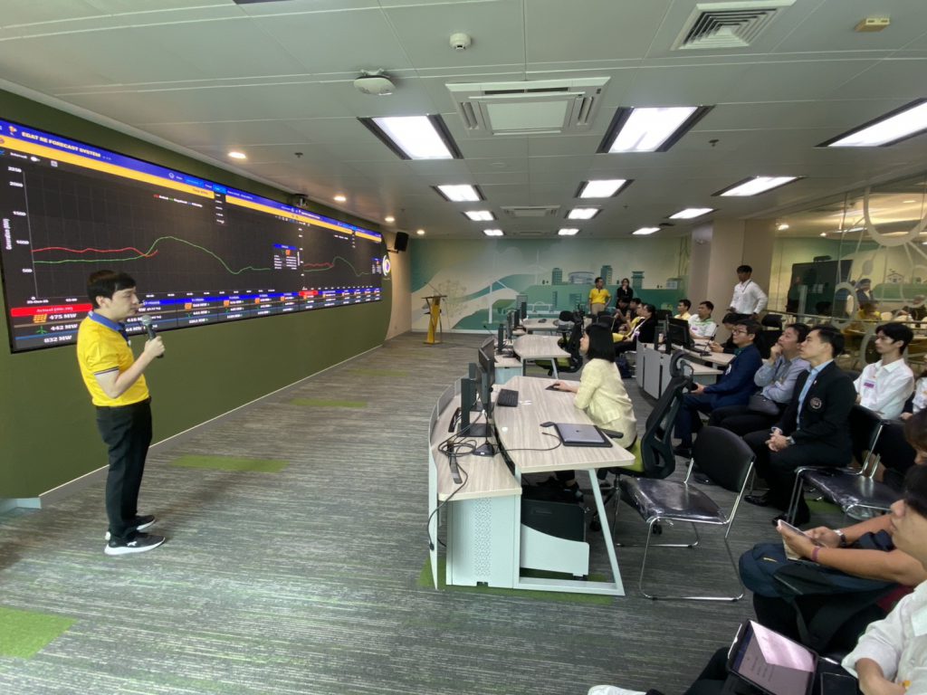 เมื่อวันที่ 20 ตุลาคม 2568 ผศ.ดร.คเณศ คัจฉสุวรรณมณี รองคณบดีฝ่ายทรัพยากรมนุษย์และสื่อสารองค์กร พร้อมด้วย รศ.ดร.ศิริโรจน์ ศิริสุขประเสริฐ หัวหน้าภาควิชาวิศวกรรมไฟฟ้า นำคณาจารย์และนิสิตภาควิชาวิศวกรรมไฟฟ้า เข้าเยี่ยมชมโรงไฟฟ้าพระนครเหนือ การไฟฟ้าฝ่ายผลิตแห่งประเทศไทย (กฟผ.) เพื่อเปิดประสบการณ์และความรู้เกี่ยวกับการผลิตไฟฟ้าภายในประเทศ โดยมีผู้บริหารและบุคลากร กฟผ. ร่วมให้การต้อนรับพร้อมนำชมศูนย์พยากรณ์การผลิตไฟฟ้าจากพลังงานหมุนเวียน (Renewable Energy Forecast Center : REFC) และศูนย์ควบคุมการตอบสนองด้านโหลด (Demand Response Control Center : DRCC) เพื่อเรียนรู้เกี่ยวกับเทคโนโลยีและระบบที่ทันสมัย สำหรับการคาดการณ์สภาพอากาศและพัฒนาแผนสำหรับการผลิตไฟฟ้าในปัจจุบัน การเข้าเยี่ยมชมโรงงานไฟฟ้าครั้งนี้ เป็นส่วนหนึ่งของการเรียนการสอน เพื่อเปิดโอกาสให้นิสิตได้รับความรู้และเรียนรู้การทำงานจากสถานประกอบการจริง และนำความรู้ไปประยุกต์ใช้ในการทำงานในอนาคตต่อไป