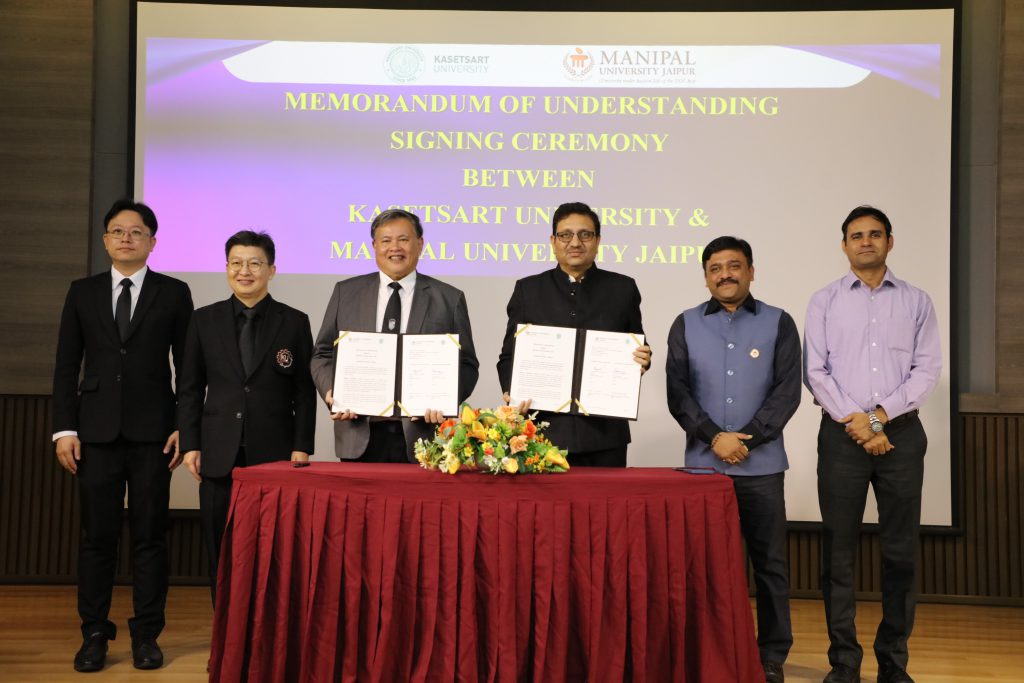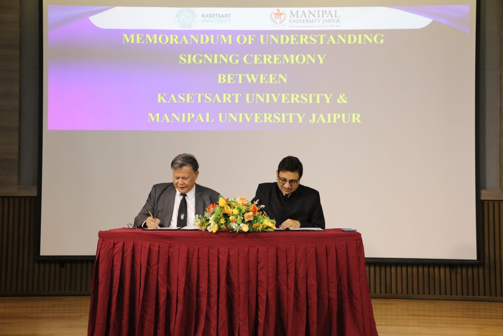 นอกจากนี้ภายในงานได้จัดให้มีพิธีลงนามความร่วมมือด้านวิชาการ-วิจัย ระหว่างมหาวิทยาลัยเกษตรศาสตร์ โดยคณะวิศวกรรมศาสตร์ กับ Manipal University Jaipur ประเทศอินเดีย โดยมี ดร.ดำรงค์ ศรีพระราม รักษาการแทนอธิการบดีมหาวิทยาลัยเกษตรศาสตร์ ลงนามร่วมกับ Prof. Dr. Niti Nipun Sharma อธิการบดี Manipal University Jaipur (MUJ) และมี ศ.ดร. วันชัย ยอดสุดใจ คณบดีคณะวิศวกรรมศาสตร์ และ Prof. Dr. Santosh Patil ภาควิชาวิศวกรรมเครื่องกล MUJ ร่วมลงนามเป็นพยาน