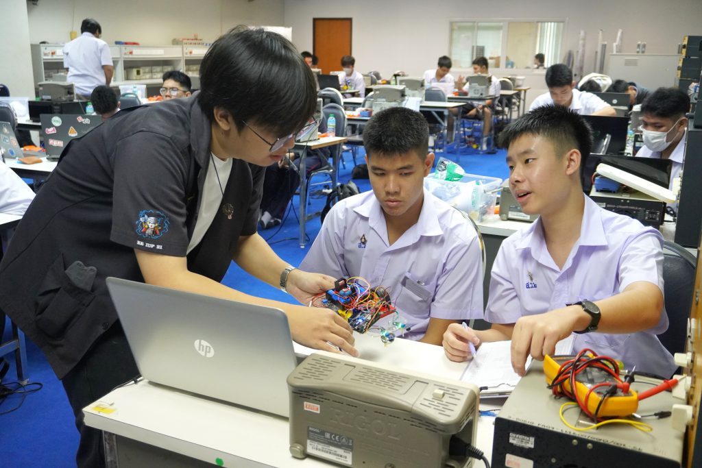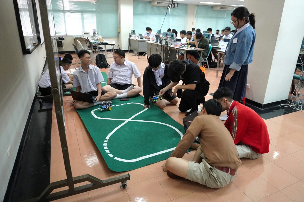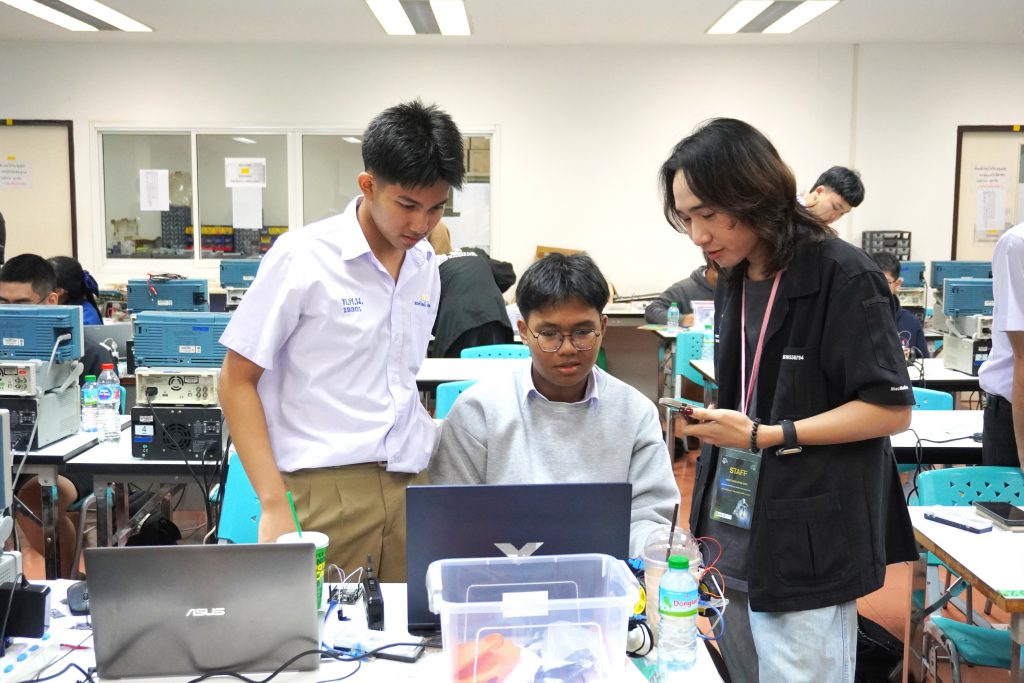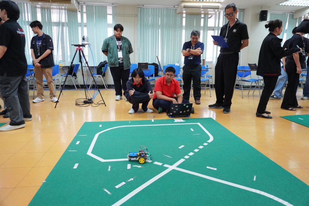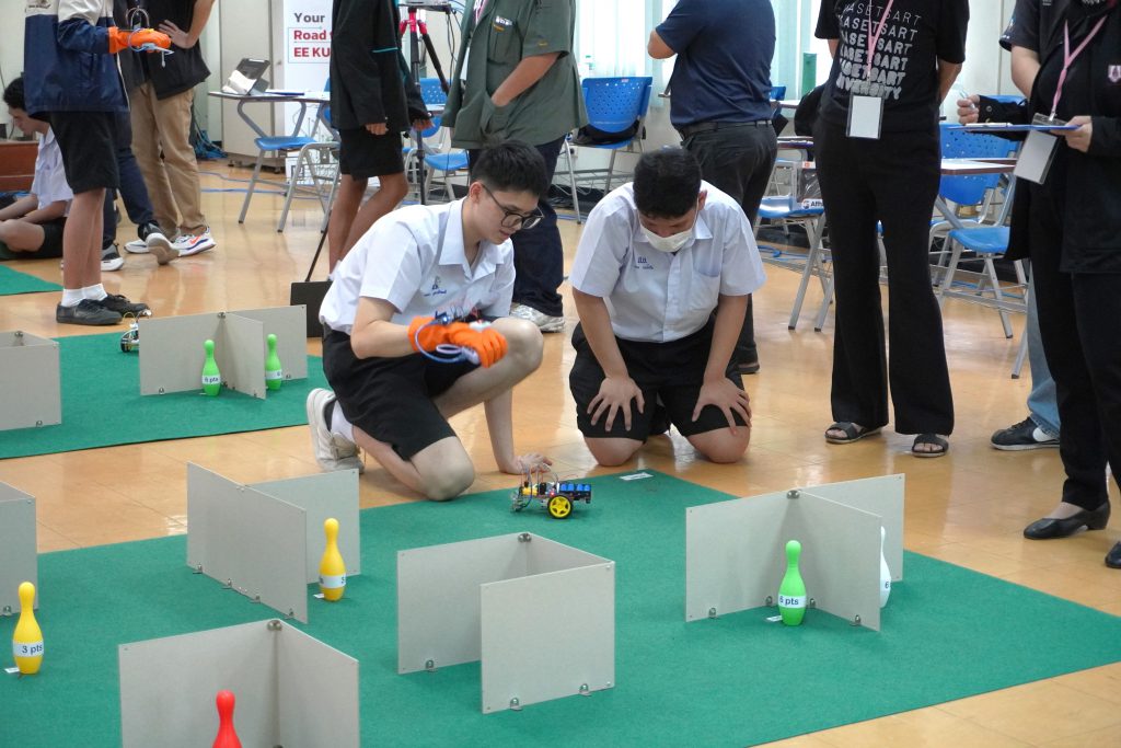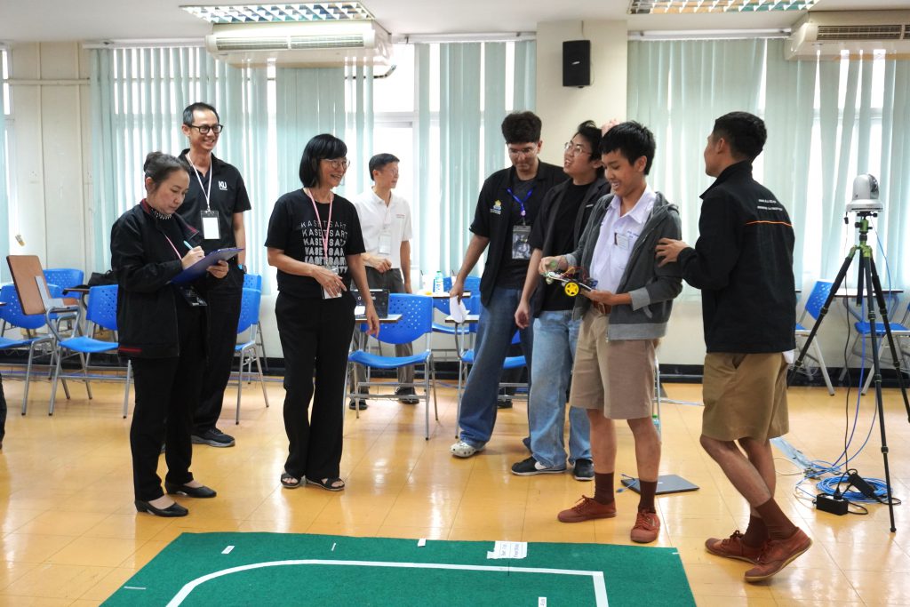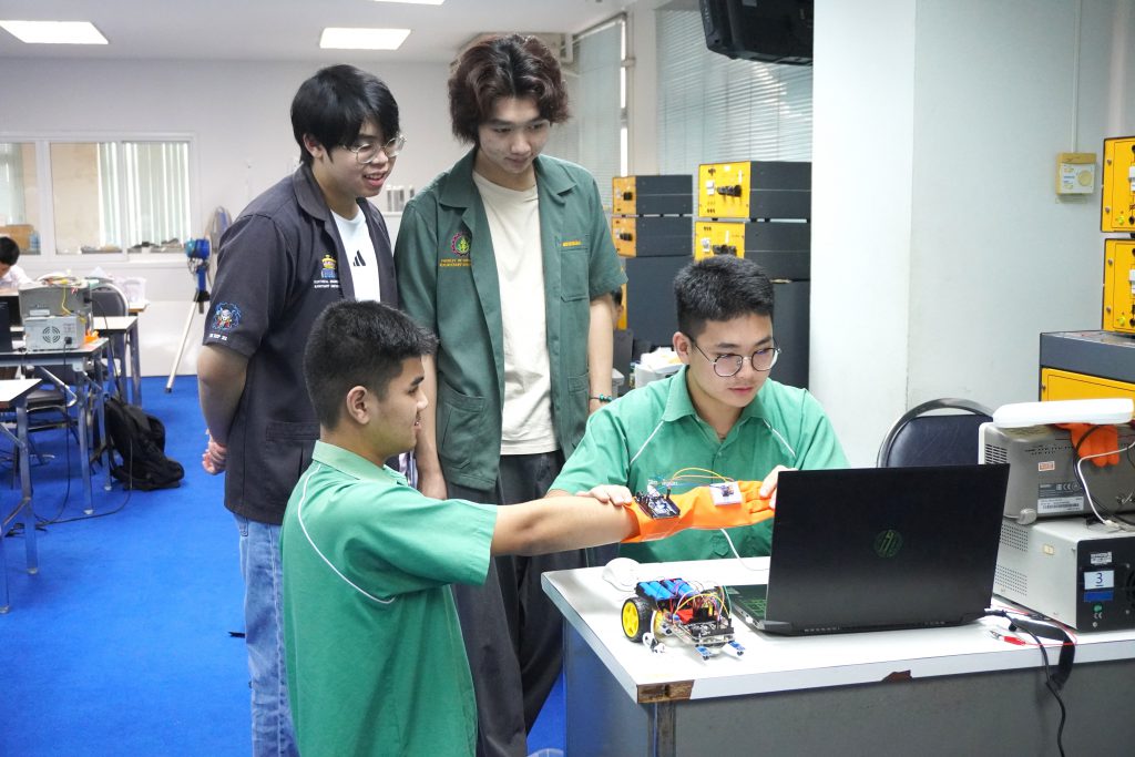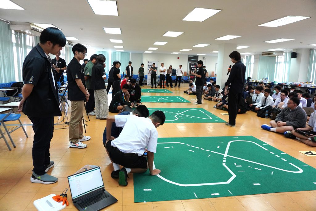 ภาควิชาวิศวกรรมไฟฟ้า จัดกิจกรรมการแข่งขันสุดยอดนวัตกรรม “VoltX Challenge 2025: Gesture-Controlled Mobile Robot with Challenging Missions 2025″ ภายใต้โครงการ “EE Future Sparks 2025: จุดประกายไฟสู่เส้นทางวิศวกรไฟฟ้า” ในรอบคัดเลือกอย่างเข้มข้น โดยมี รศ.ดร. ศิริโรจน์ ศิริสุขประเสริฐ หัวหน้าภาควิชาวิศวกรรมไฟฟ้า เป็นประธานเปิดการแข่งขัน และมีทีมนักเรียนชั้นมัธยมศึกษาปีที่ 5 – 6 จากโรงเรียนต่าง ๆ เข้าร่วมการแข่งขัน จำนวน 36 ทีม จัดขึ้นระหว่างวันที่ 1-2 พฤศจิกายน 2568 ณ ภาควิชาวิศวกรรมไฟฟ้า คณะวิศวกรรมศาสตร์ มหาวิทยาลัยเกษตรศาสตร์ (มก.) โดยทีมนักเรียนผู้เข้าร่วมการแข่งขัน ได้นำความรู้และทักษะที่ได้รับจากการเข้าร่วมอบรมเชิงปฏิบัติการด้านพัฒนาหุ่นยนต์ที่จัดโดยภาควิชาวิศวกรรมไฟฟ้าเมื่อวันที่ 18 และ 25 ตุลาคม 2568 ที่ผ่านมา ประยุกต์ใช้ในการแข่งขัน ทั้งด้านการพัฒนาและโปรแกรมหุ่นยนต์ การทำงานเป็นทีม ตลอดจนการแก้ไขปัญหาเฉพาะหน้า