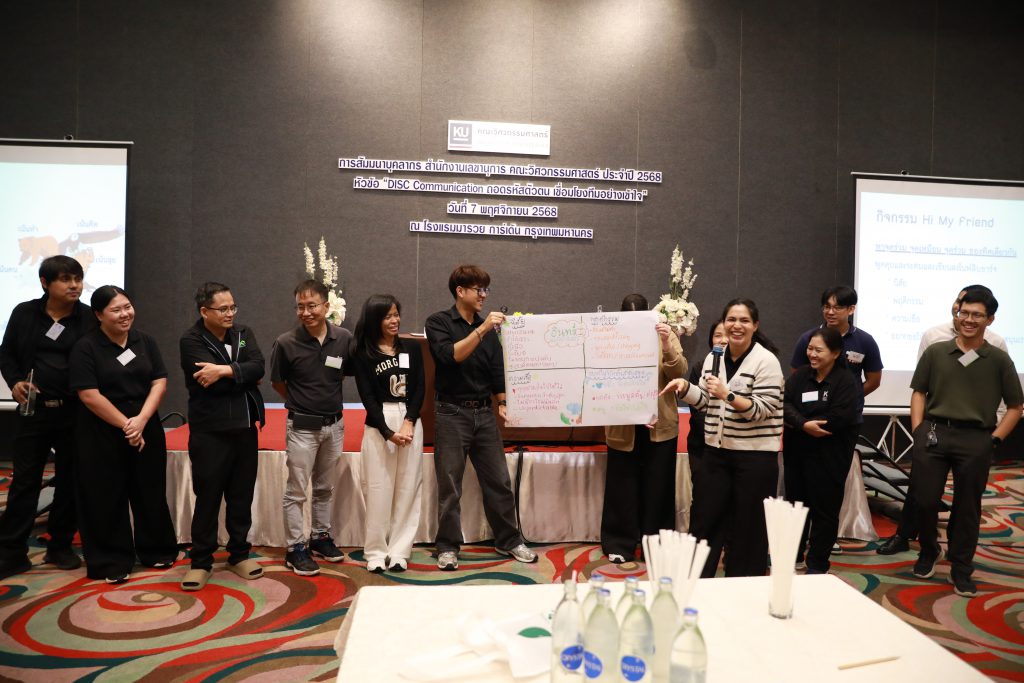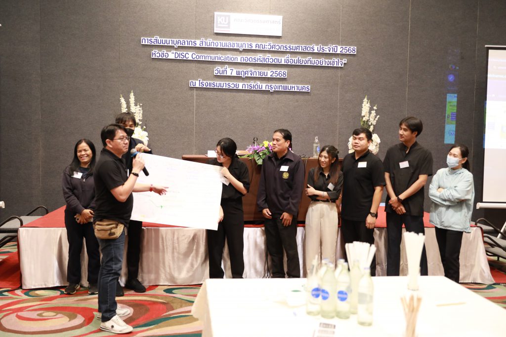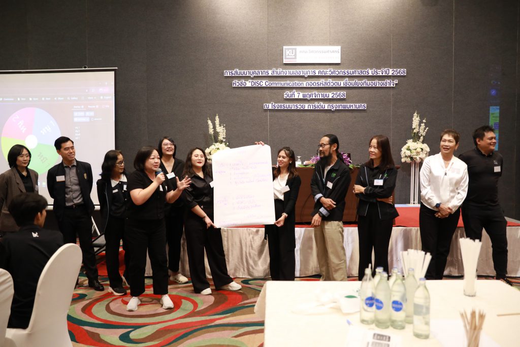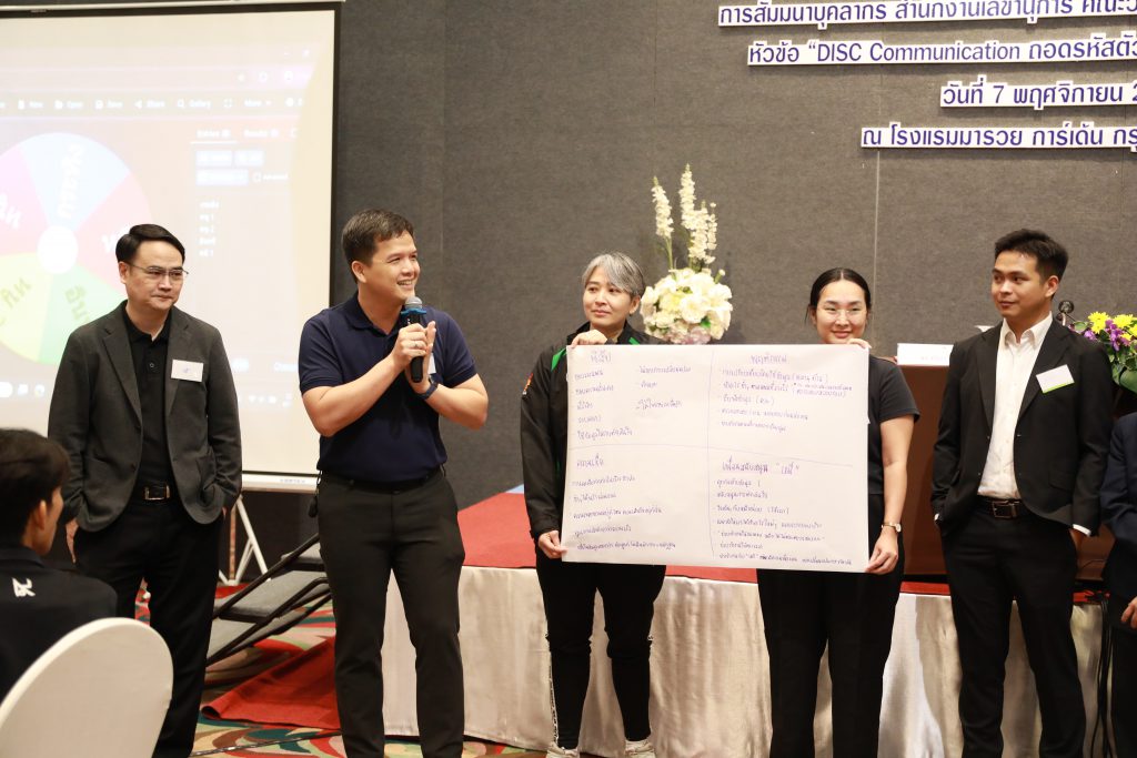 เมื่อวันที่ 7 พฤศจิกายน 2568 สำนักงานเลขานุการ จัดอบรมเชิงปฏิบัติการ เรื่อง DISC Communication ถอดรหัสตัวตน เชื่อมโยงทีมอย่างเข้าใจ ซึ่งเป็นส่วนหนึ่งของการสัมมนาบุคลากรสำนักงานเลขานุการ ประจำปี 2568 โดยมี ศ.ดร. วันชัย ยอดสุดใจ คณบดีคณะวิศวกรรมศาสตร์ เป็นประธานเปิดการสัมมนา และมี อ.ดร.วรัญญู องศารา อาจารย์ประจำภาควิชาจิตวิทยา คณะมนุษยศาสตร์และสังคมศาสตร์ มหาวิทยาลัยบูรพา พร้อมทีมงาน เป็นวิทยากรให้ความรู้เกี่ยวกับลักษณะและพฤติกรรมของมนุษย์เพื่อเข้าใจตนเองและผู้อื่น รวมถึงการต่อยอดในการพัฒนาตนเอง พร้อมเปิดใจยอมรับความหลากหลายของผู้อื่น ทำให้การทำงานร่วมกันเป็นทีม (Teamwork) มีประสิทธิภาพมากยิ่งขึ้น มีผู้บริหารและบุคลากรสำนักงานเลขานุการร่วมอบรม จัดขึ้น ณ ห้องมารวย แกรนด์ บอลรูม ซี โรงแรม มารวยการ์เด้น