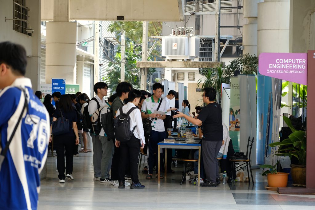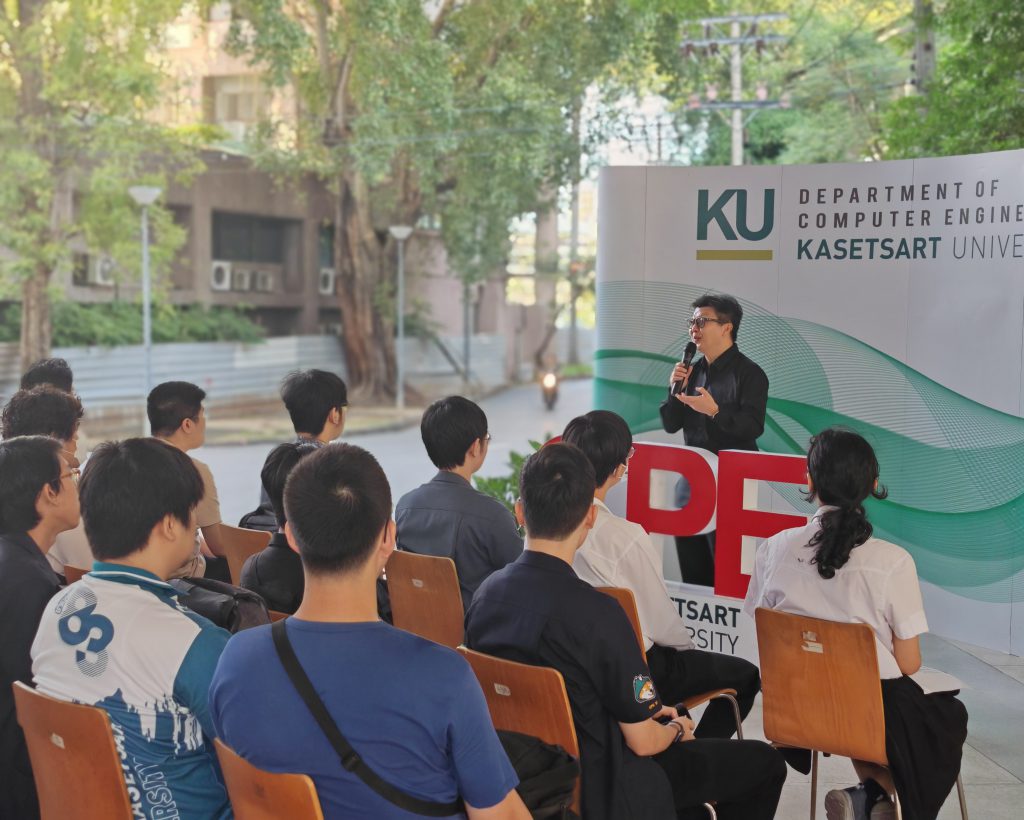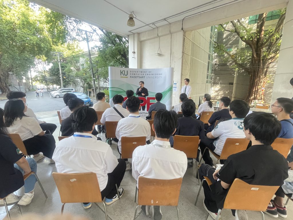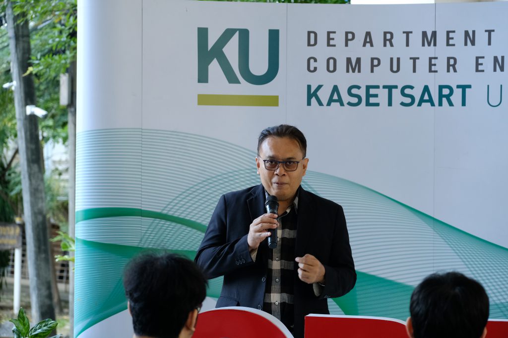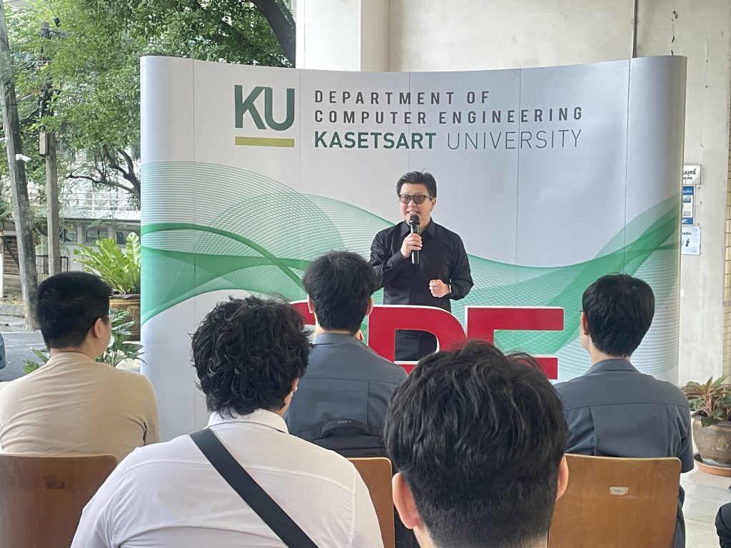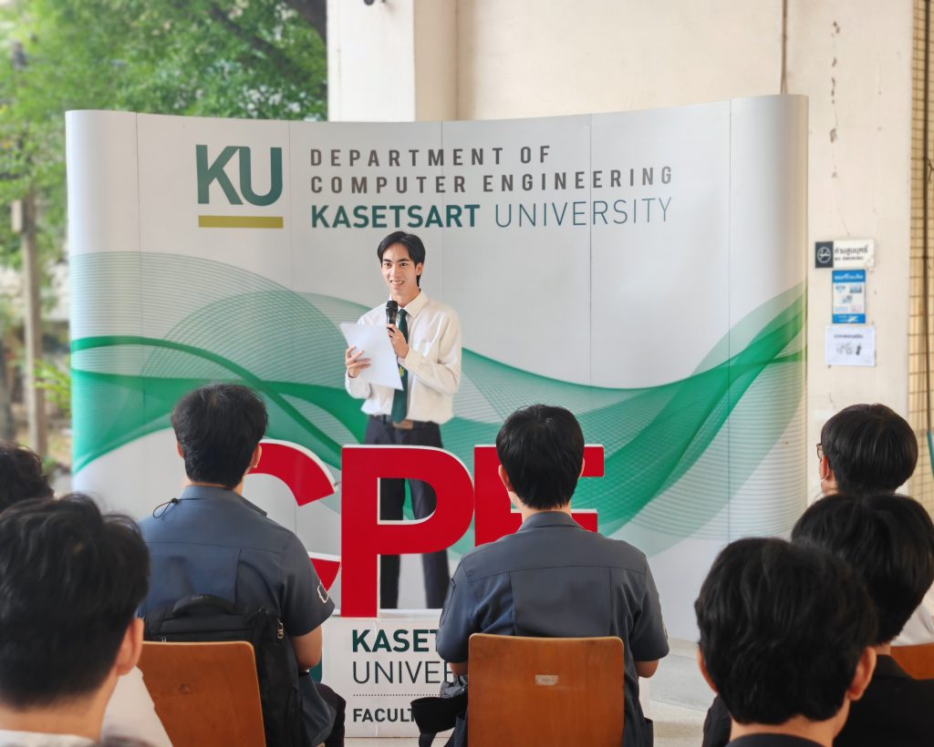 เมื่อวันที่ 26 พฤศจิกายน 2568 ภาควิชาวิศวกรรมคอมพิวเตอร์ จัดงาน KU Computer Engineering JOB FAIR เพื่อเปิดโอกาสให้นิสิตได้สมัครงานกับบริษัทชั้นนำโดยตรง และได้เรียนรู้เพื่อเตรียมตัวก้าวสู่การทำงานในอนาคต โดยมี ศ.ดร.วันชัย ยอดสุดใจ คณบดีคณะวิศวกรรมศาสตร์ เป็นประธานเปิดงาน รศ.ดร.พันธุ์ปิติ เปี่ยมสง่า หัวหน้าภาควิชาวิศวกรรมคอมพิวเตอร์ กล่าวต้อนรับผู้ร่วมงาน และอาจารย์ในภาควิชาร่วมให้คำแนะนำการเตรียมตัวสมัครงานในเบื้องต้น จัดขึ้น ณ โถงชั้น 1 ภาควิชาวิศวกรรมคอมพิวเตอร์