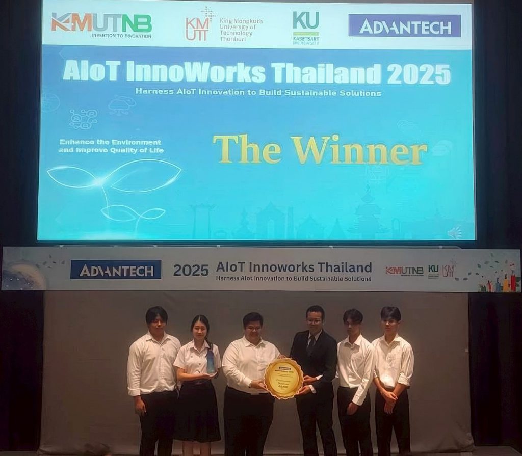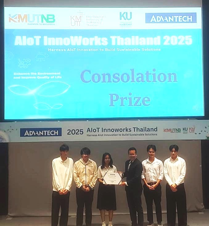 ทีมนิสิตและอาจารย์คณะวิศวกรรมศาสตร์ ได้รับรางวัลชนะเลิศและรางวัลชมเชย จากการแข่งขันเชิงแนวคิดและนวัตกรรม AIoT InnoWorks Thailand 2025 ภายใต้หัวข้อ Harness AIoT Innovation to Build Sustainable Solutions-Pitching Day จัดโดยบริษัท Advantech Corporation (Thailand) Co., Ltd. โดยผู้ได้รับรางวัลได้เข้ารับรางวัลในพิธีที่จัดขึ้นเมื่อวันที่ 28 พฤศจิกายน 2568 ณ อาคารการเรียนรู้พหุวิทยาการ Learning Exchange (LX) มหาวิทยาลัยเทคโนโลยีพระจอมเกล้าธนบุรี