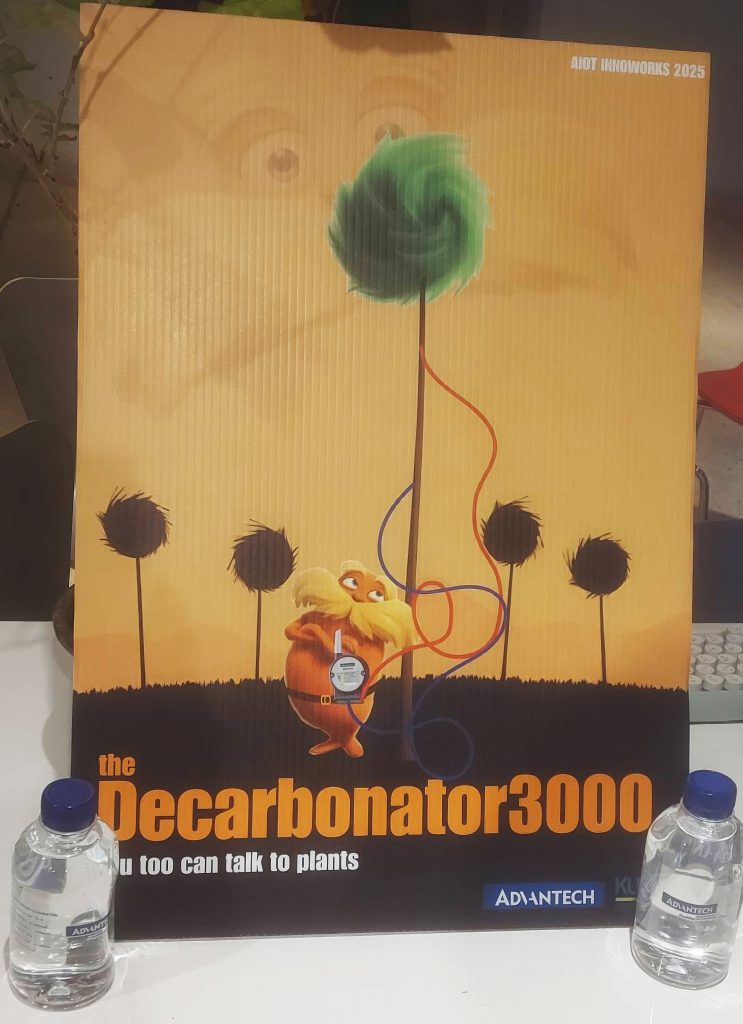 รางวัลชมเชย ได้แก่ ทีม The Decarbonator 3000 จากผลงาน You too can talk to plants สมาชิกทีม ประกอบด้วย นิสิตภาควิชาวิศวกรรมคอมพิวเตอร์ ได้แก่ นายณรัณ วงศ์วุฒิสาโรช นางสาวพชรมน ปุตระเศรณี นายธรรมพัฒน์ รัตนตรัยภพ นายก้องภพ ไพเราะ และนายนิธิศรัฎฐ์ พุฒิภาพงศ์ โดยมี รศ.ดร.อนันต์ ผลเพิ่ม ภาควิชาวิศวกรรมคอมพิวเตอร์ และ รศ.ดร.วรรณรัตน์ ผลเพิ่ม ภาควิชาชีวเคมี คณะวิทยาศาสตร์ มหาวิทยาลัยเกษตรศาสตร์ และมี รศ.ดร.จักรพันธ์ อร่ามพงษ์พันธ์ ภาควิชาวิศวกรรมอุตสาหการ เป็นอาจารย์ผู้ประสานงาน AIoT InnoWorks 2025