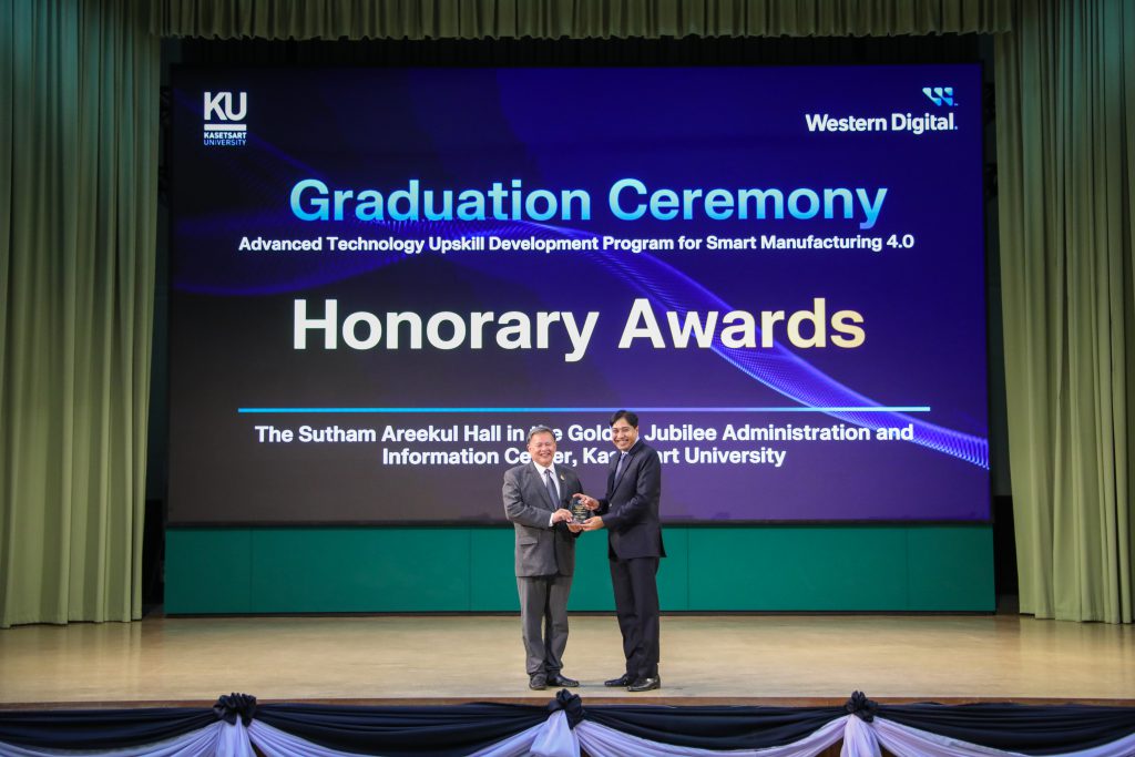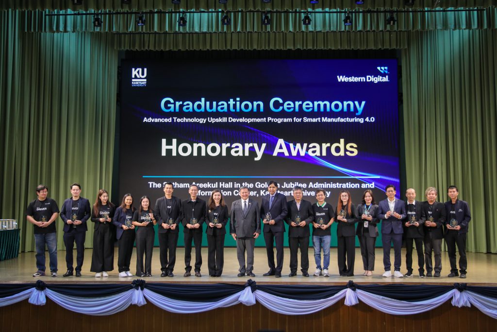 มหาวิทยาลัยเกษตรศาสตร์ ร่วมกับ บริษัท เวสเทิร์น ดิจิตอล สตอเรจ เทคโนโลยีส์ (ประเทศไทย) จำกัด และสำนักงานคณะกรรมการส่งเสริมการลงทุน (BOI) จัดพิธีมอบวุฒิบัตรแสดงความยินดีแก่ผู้สำเร็จการศึกษาใน โครงการพัฒนาทักษะเทคโนโลยีขั้นสูงสำหรับการผลิตอัจฉริยะ 4.0 (Advanced Technology Upskill Development Program for Smart Manufacturing 4.0) ซึ่งนับเป็นอีกหนึ่งหมุดหมายสำคัญของประเทศไทยในการก้าวสู่ยุคอุตสาหกรรม 4.0 และการผลิตขั้นสูงในอนาคต