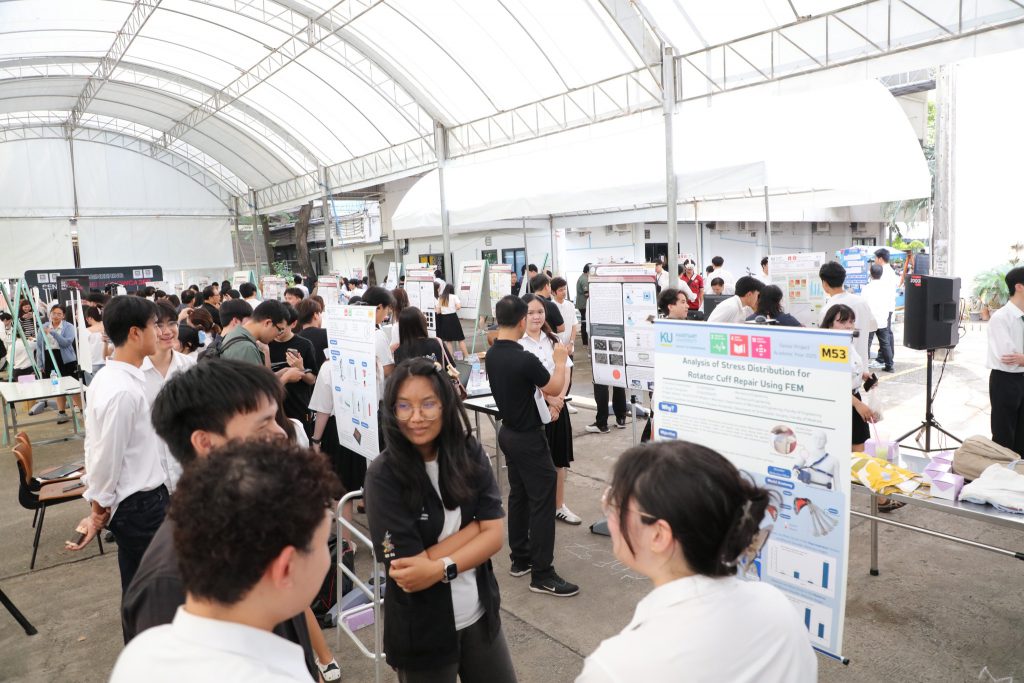 เมื่อวันพุธที่ 18 กุมภาพันธ์ 2569 คณะวิศวกรรมศาสตร์ มก. จัดงาน KU Engineering Senior Project Showcases โชว์ผลงานภาคโปสเตอร์ของนิสิตชั้นปีที่ 4 จากภาควิชาวิศวกรรมคอมพิวเตอร์ ภาควิชาวิศวกรรมเครื่องกล ภาควิชาวิศวกรรมโยธา และภาควิชาวิศวกรรมเคมี พร้อมให้ผู้เข้าชมร่วมโหวตผลงานที่ชื่นชอบ ณ บริเวณด้านหน้าอาคารภาควิชาวิศวกรรมเคมี (อาคาร 1) และอาคารภาควิชาวิศวกรรมคอมพิวเตอร์ (อาคาร 15) คณะวิศวกรรมศาสตร์ นอกจากนี้ยังมีกิจกรรมการบรรยายพิเศษโดยคณาจารย์ ณ ห้องประชุม IUP ชั้น 2 อาคารนานาชาติ (อาคาร 17) การบรรยายพิเศษประกอบด้วย