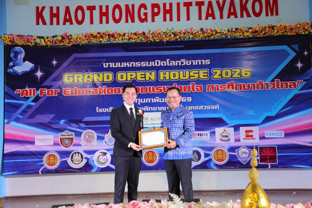 เมื่อวันที่ 20 กุมภาพันธ์ 2569 ผู้บริหารคณะวิศวกรรมศาสตร์ ร่วมงานเปิดโลกวิชาการ Grand Open House 2026 และโครงการ CSR ALTERVIM SWITCH ON พลังงานสะอาด ซีซั่น 3 ณ หอประชุมโรงเรียนเขาทองพิทยาคม จ.นครสวรรค์ โดยมี ดร.วีระ แข็งกสิการ รองปลัดกระทรวงศึกษาธิการ เป็นประธานในพิธี และมีนายบุญเลื่อง รอดมา ผู้อำนวยการโรงเรียนเขาทองพิทยาคม ศ.ดร.วันชัย ยอดสุดใจ คณบดีคณะวิศวกรรมศาสตร์ นายสมบูรณ์ เลิศสุวรรณโรจน์ ประธานเจ้าหน้าที่บริหารบริษัท อัลเตอร์วิม จำกัด (ALTERVIM) รวมถึงคณะครู นักเรียน บุคลากร โรงเรียนเขาทองพิทยาคม กว่า 500คน ร่วมในพิธีดังกล่าว ภายในงานมีการแสดงของนักเรียน ชื่อชุด “ผืนไทย” และการกล่าวสัมโมทนียกถา โดยพระครูนิภาธรรมวงศ์ เจ้าอำเภอพยุหะคีรี กิตติมศักดิ์ และเจ้าอาวาสวัดเขาทอง