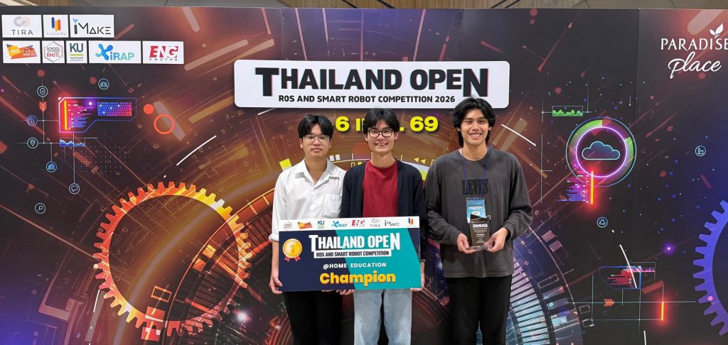 คณะวิศวกรรมศาสตร์ ขอแสดงความยินดีและชื่นชม นิสิตคณะทีม Cleanest ที่ได้รับรางวัลชนะเลิศ (แชมป์ประเทศไทย) จากการแข่งขัน Thailand Open ROS and Smart Robot Competition 2026 จัดโดย iMake innovation สมาคมการสร้างนวัตกรรมและหุ่นยนต์ (TIRA) คณะวิศวกรรมศาสตร์ มหาวิทยาลัยเกษตรศาสตร์ คณะวิศวกรรมศาสตร์ มหาวิทยาลัยเทคโนโลยีพระจอมเกล้าพระนครเหนือ และคณะวิศวกรรมศาสตร์ สถาบันเทคโนโลยีพระจอมเกล้าเจ้าคุณทหารลาดกระบัง